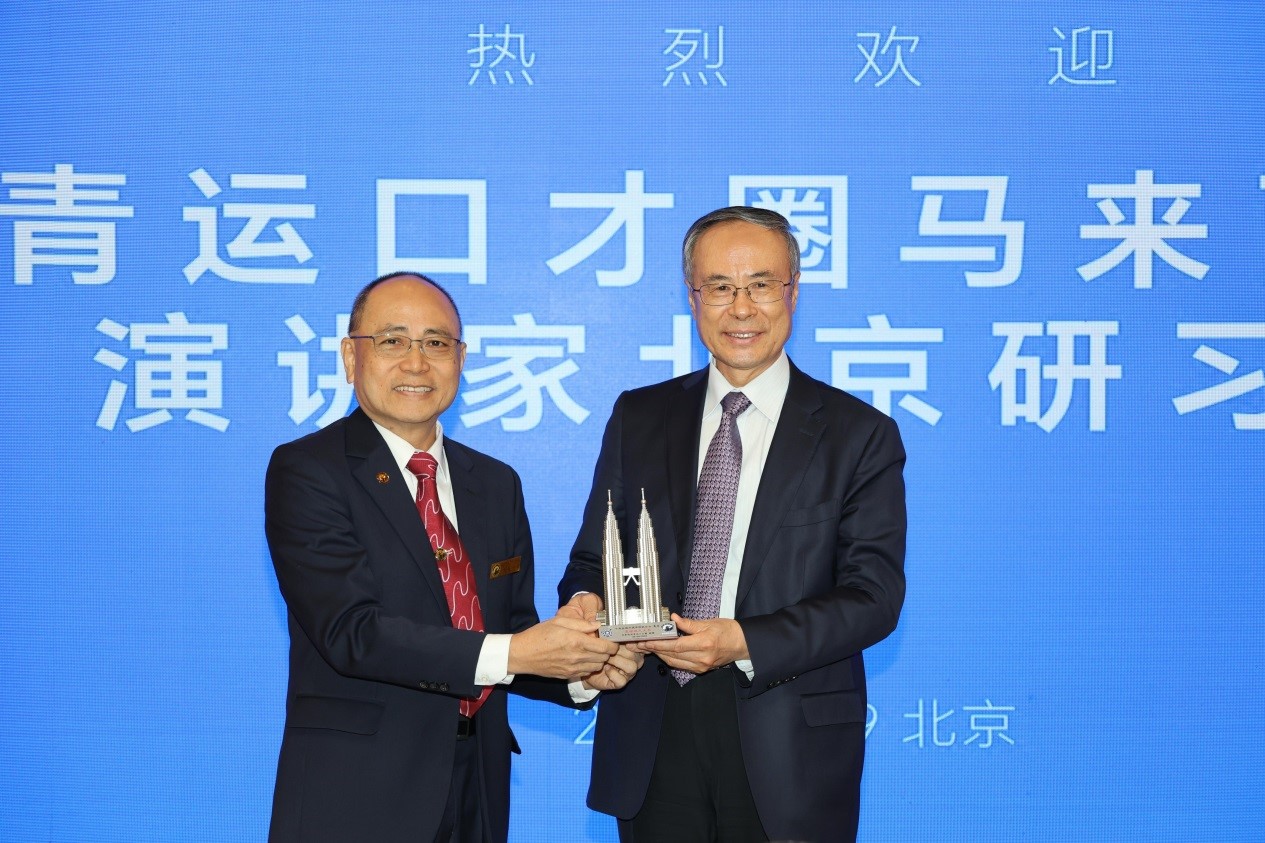 4月9日,中國僑聯主席萬立駿、副主席程學源在北京會見了馬來西亞青年運動總會口才圈北京研習團一行。