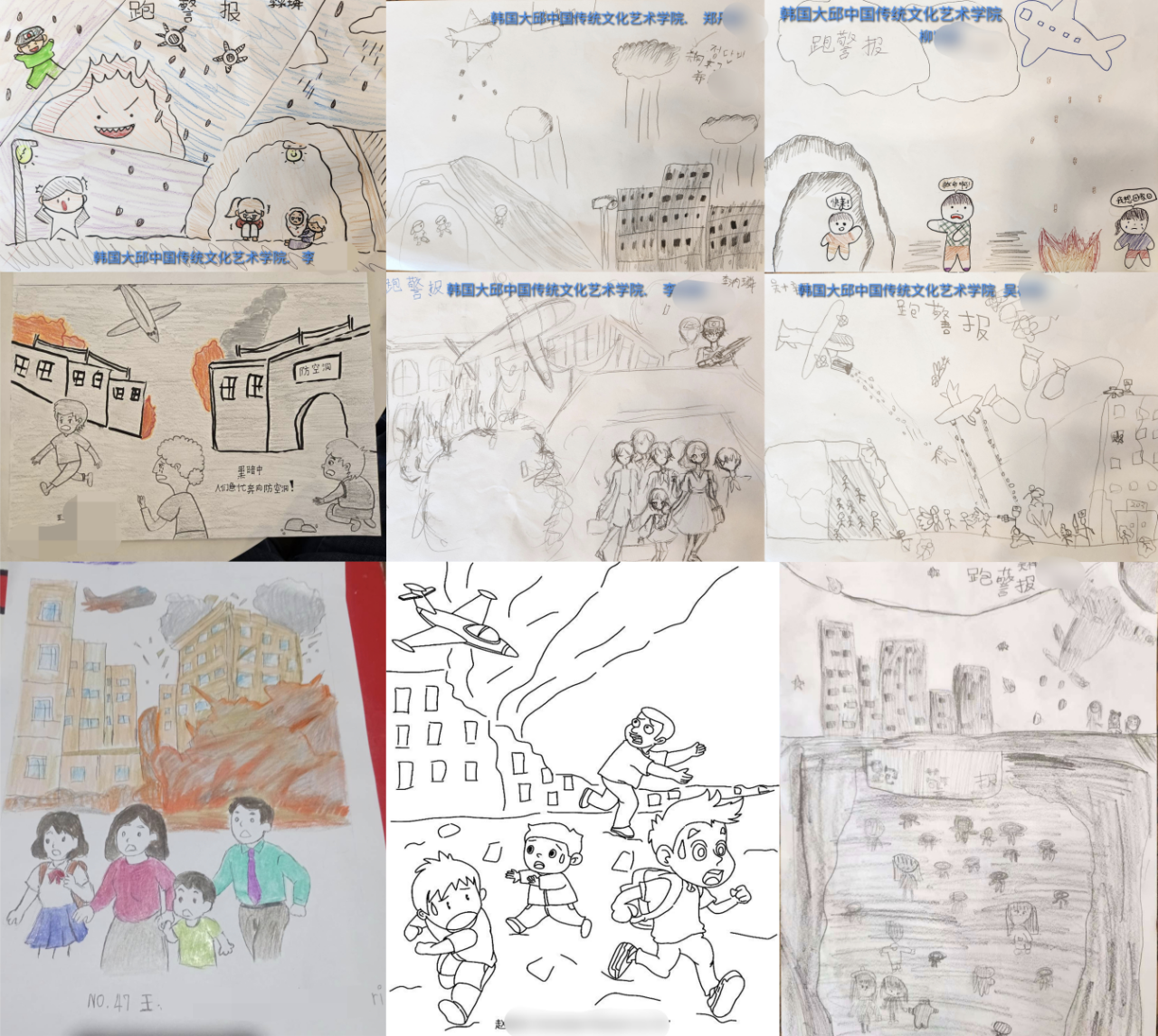 《堅(jiān)強(qiáng)堡壘》一課分為“從非常到日常:跑警報(bào)”“地下生活:微型社會(huì)”“城市記憶:活著的遺產(chǎn)”三個(gè)小節(jié)。課程聚焦防空洞這一特殊地下空間,講述在面對(duì)日軍無(wú)差別的狂轟濫炸時(shí),重慶人民展現(xiàn)的頑強(qiáng)的毅力與不屈的斗志,生動(dòng)詮釋中華民族在深重苦難中迸發(fā)的不屈抗戰(zhàn)精神,揭示中國(guó)戰(zhàn)場(chǎng)對(duì)世界反法西斯戰(zhàn)爭(zhēng)的巨大貢獻(xiàn)。課后,海外華裔青少年們創(chuàng)作提交了豐富多彩的作品,表達(dá)出對(duì)于課程內(nèi)容的認(rèn)識(shí)和思考。