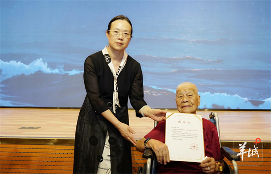 百歲歸僑、抗戰(zhàn)老兵鐘炳聰作為受訪者代表來到活動現場