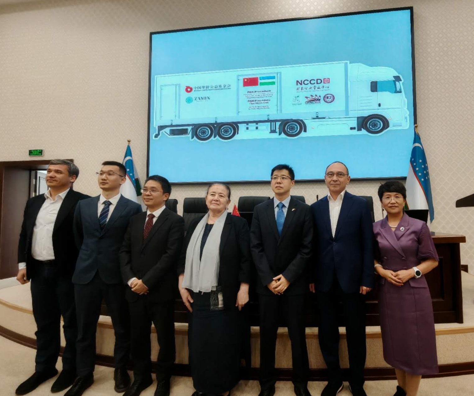 在與會嘉賓的見證下,舉行了移動手術(shù)車的象征性交接儀式。鄭曉輝代表基金會向?yàn)醴骄栀浽撫t(yī)療設(shè)備,烏茲別克斯坦衛(wèi)生部副部長埃爾米拉·巴西特哈諾娃代表烏方見證并接收了車輛模型。該移動手術(shù)車將待實(shí)際運(yùn)抵后正式投入服務(wù)。