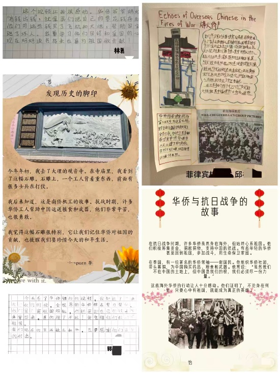 “在抗日戰(zhàn)爭時期,許多華僑雖然身在海外,但始終心系祖國。他們積極籌集資金,捐款捐物,支持中國的抗戰(zhàn)。有些年輕的華僑甚至回到祖國,參加戰(zhàn)斗,用生命保衛(wèi)家園”,來自泰國絲路國際教育的怡同學(xué)表示,“這些海外華僑的行動讓人十分感動。他們證明了,不論身在何處,只要心中有祖國,就能成為真正的英雄。”泰國絲路國際教育的李同學(xué)說:“我們要記住華僑對祖國的貢獻,也提醒我們要珍惜今天的和平生活。”意大利新玉語言學(xué)校林同學(xué)表示:“我要學(xué)習(xí)他們團結(jié)和愛國的心,現(xiàn)在好好讀書,將來也要為祖國作貢獻!”