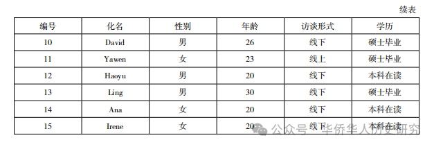 本研究采用深度訪談、個案研究和民族志方法,實施時間為2020—2024年。研究流程包括三個階段:一是通過深度訪談,與1.5代華人移民展開深入交流,并在訪談后保持聯系;二是通過個案研究,參與受訪者的日常生活,近距離觀察和分析其身份認同的流動性與文化適應;三是利用民族志的寫作形式,以深描(thick description)的方式展現1.5代移民的身份流變路徑與機制。