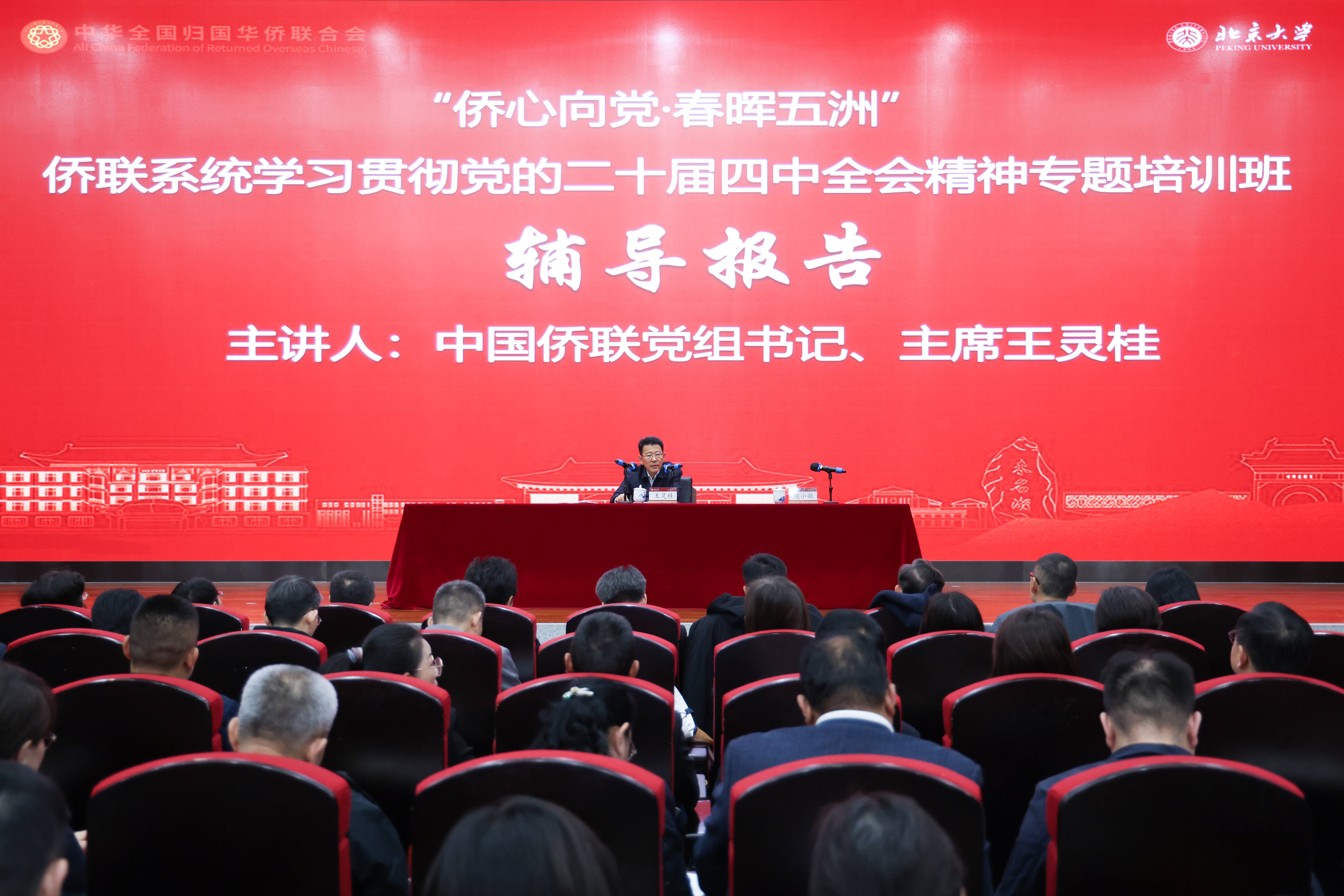 11月11日上午,“僑心向黨·春暉五洲”僑聯(lián)系統(tǒng)學(xué)習(xí)貫徹黨的二十屆四中全會精神專題培訓(xùn)班在北京大學(xué)開班。中國僑聯(lián)黨組書記、主席王靈桂出席開班式并作動員講話和輔導(dǎo)報告。中國僑聯(lián)黨組成員、副主席,直屬機(jī)關(guān)黨委書記連小敏主持開班式。北京大學(xué)黨委副書記、統(tǒng)戰(zhàn)部部長姜國華致辭。